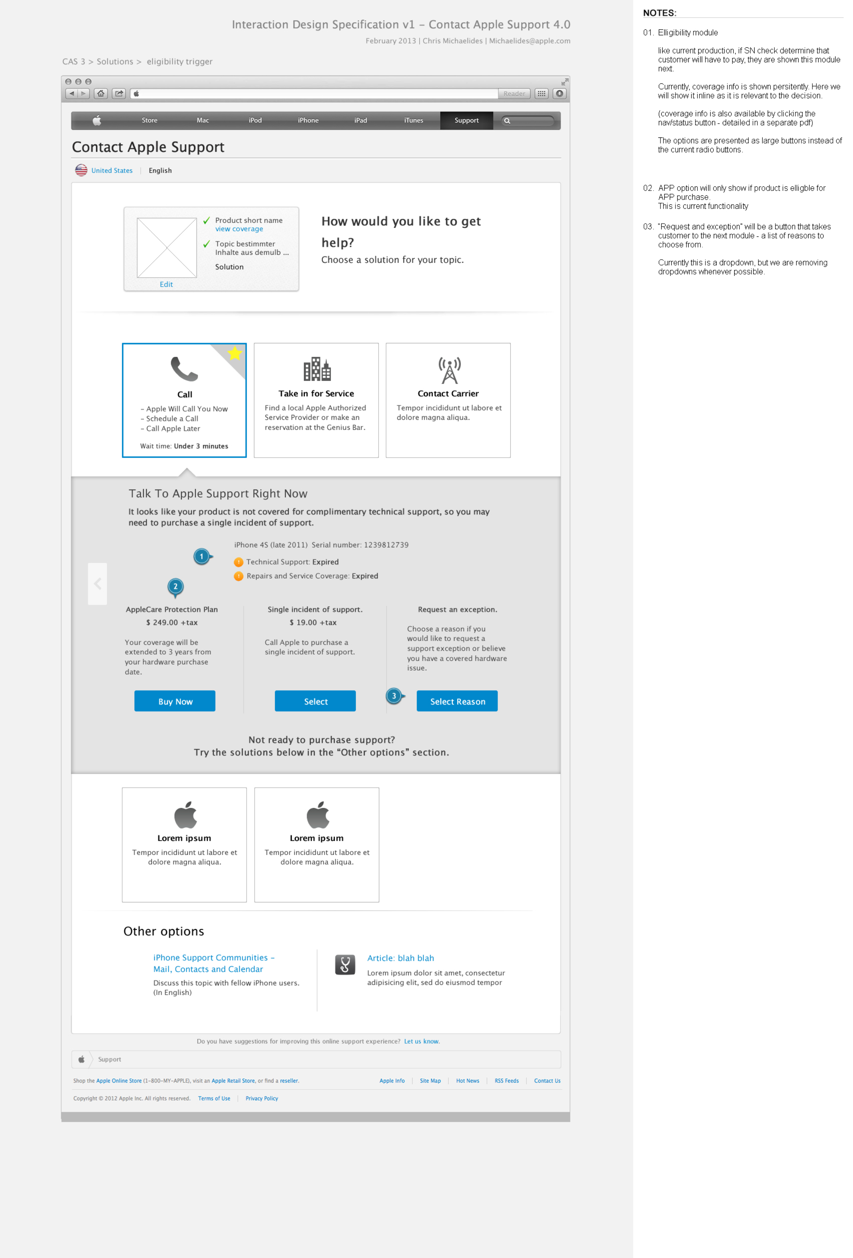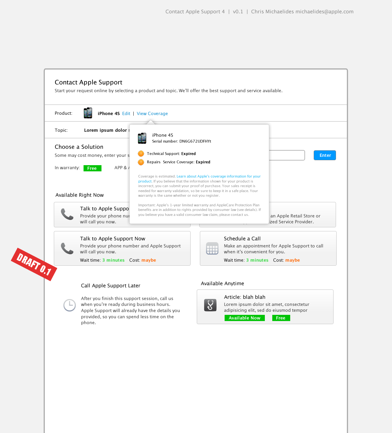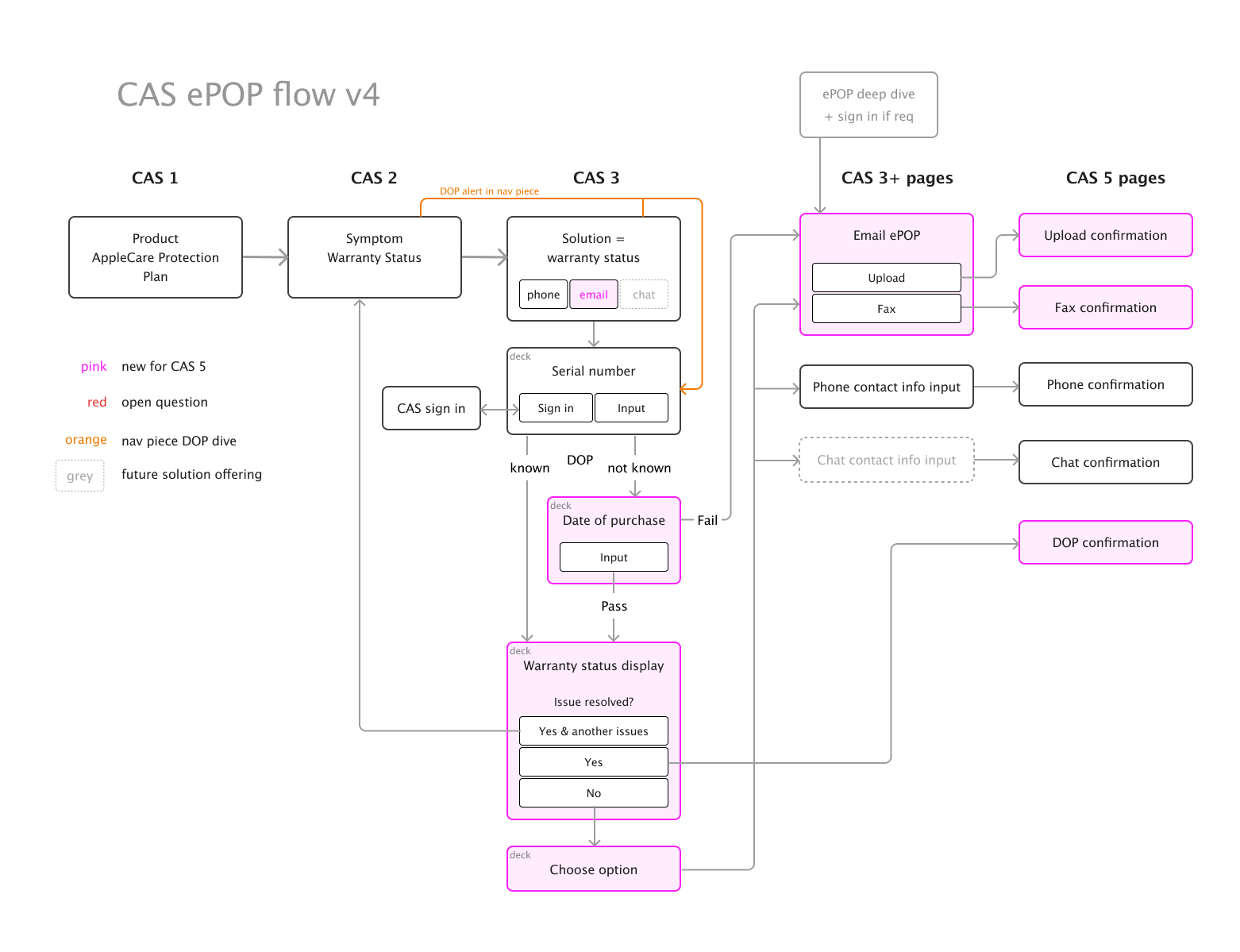 Early on, we codified some principles to shape the scope and tone of CAS. The screen flows should feel like talking to an Apple Genius.