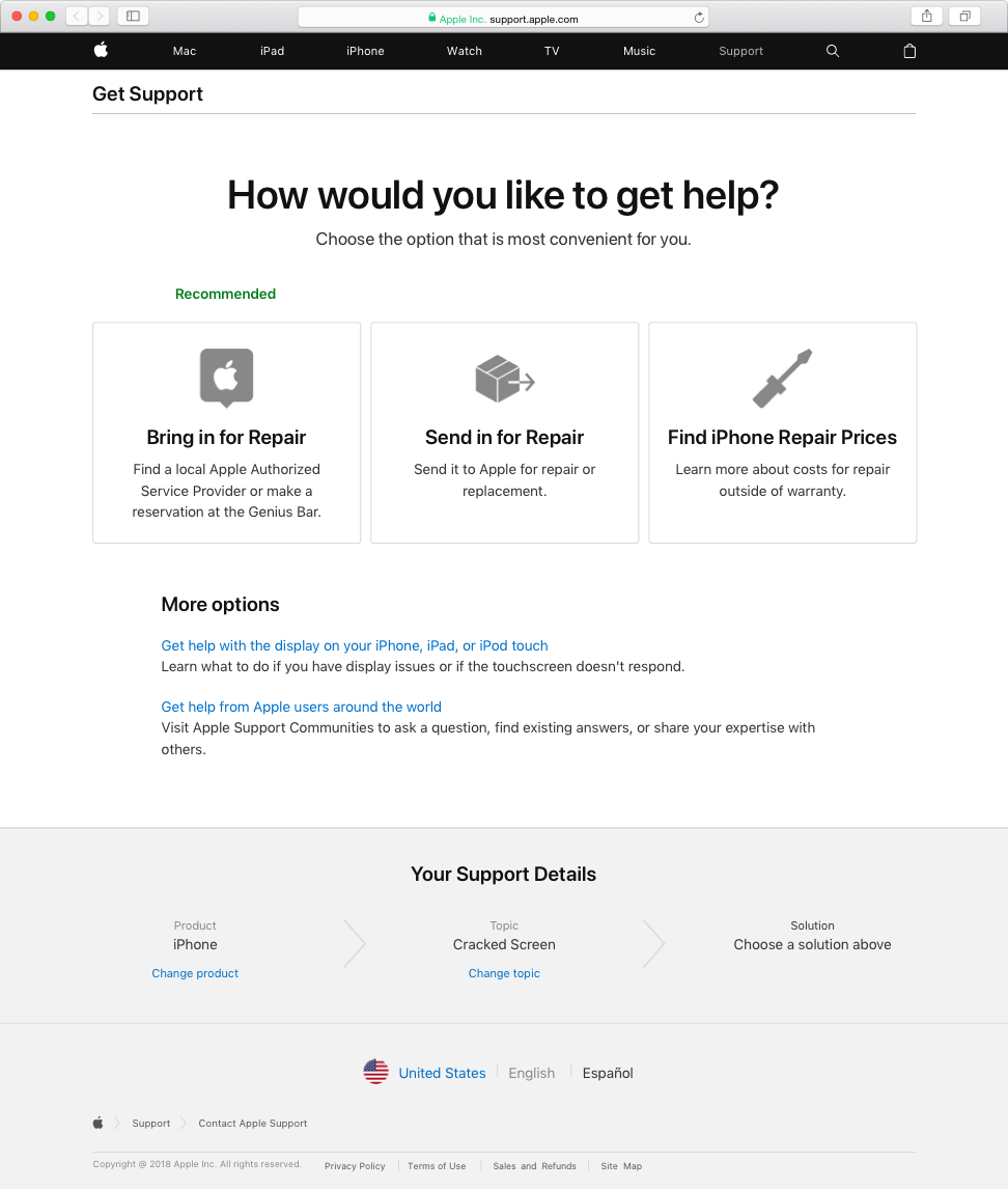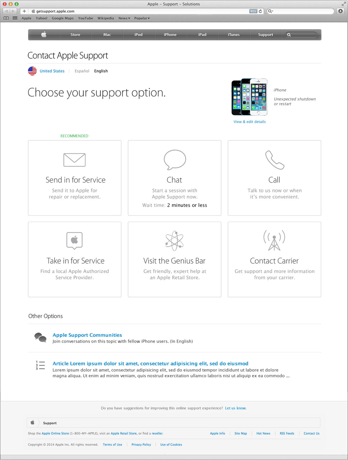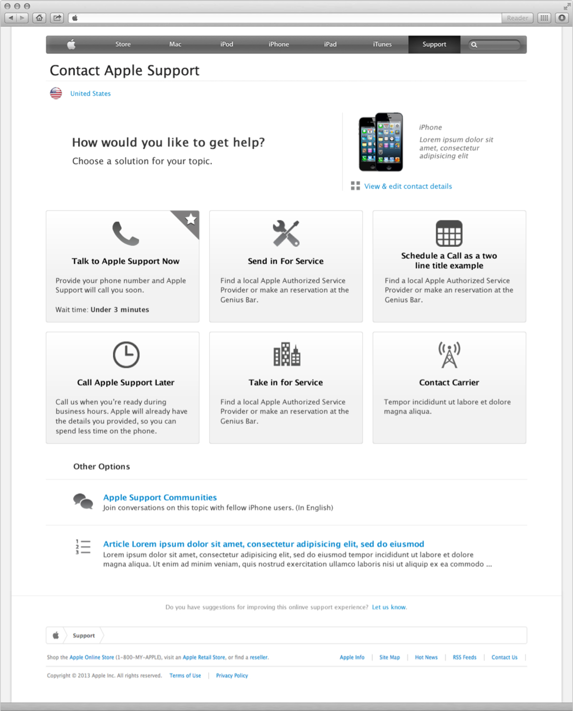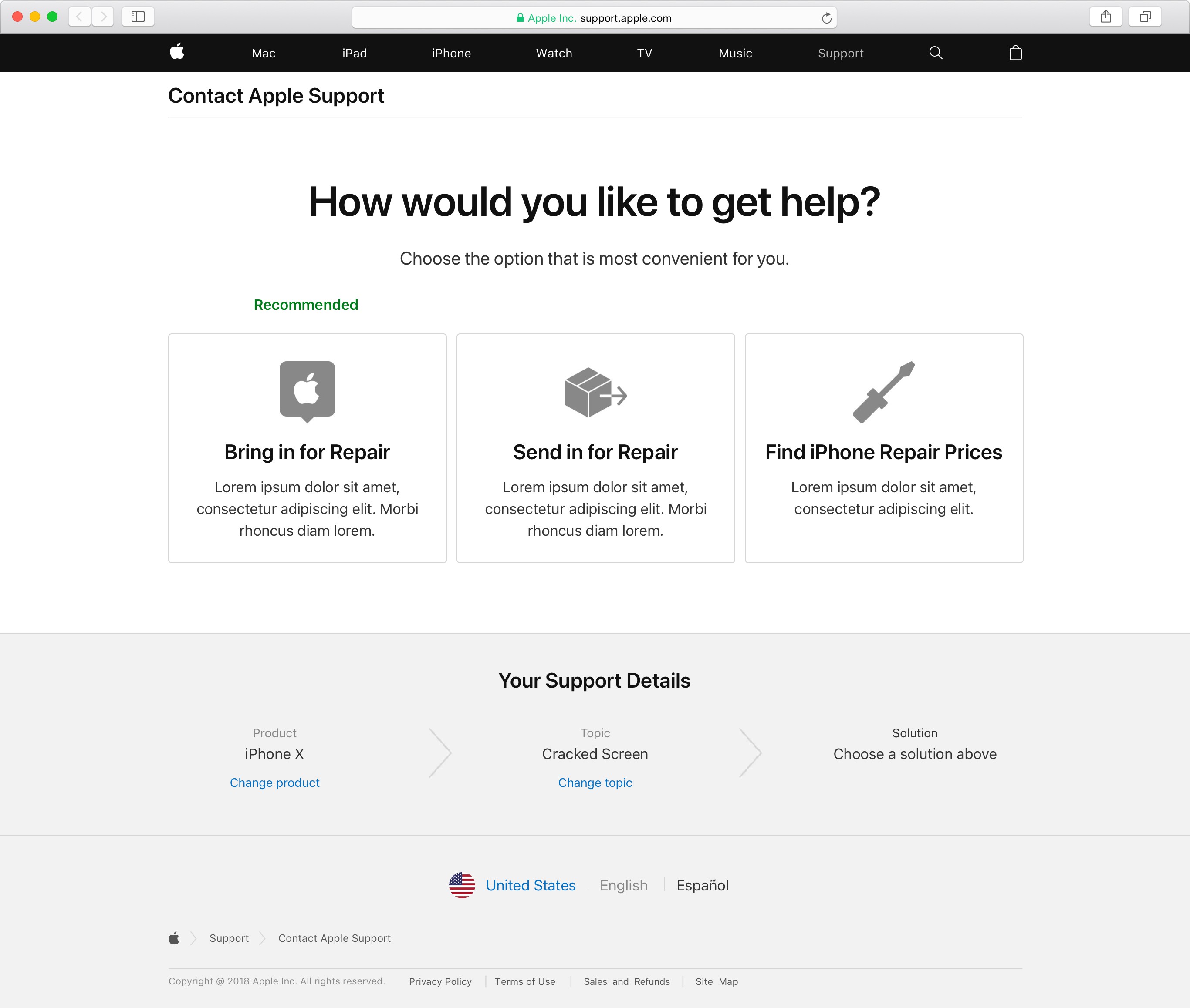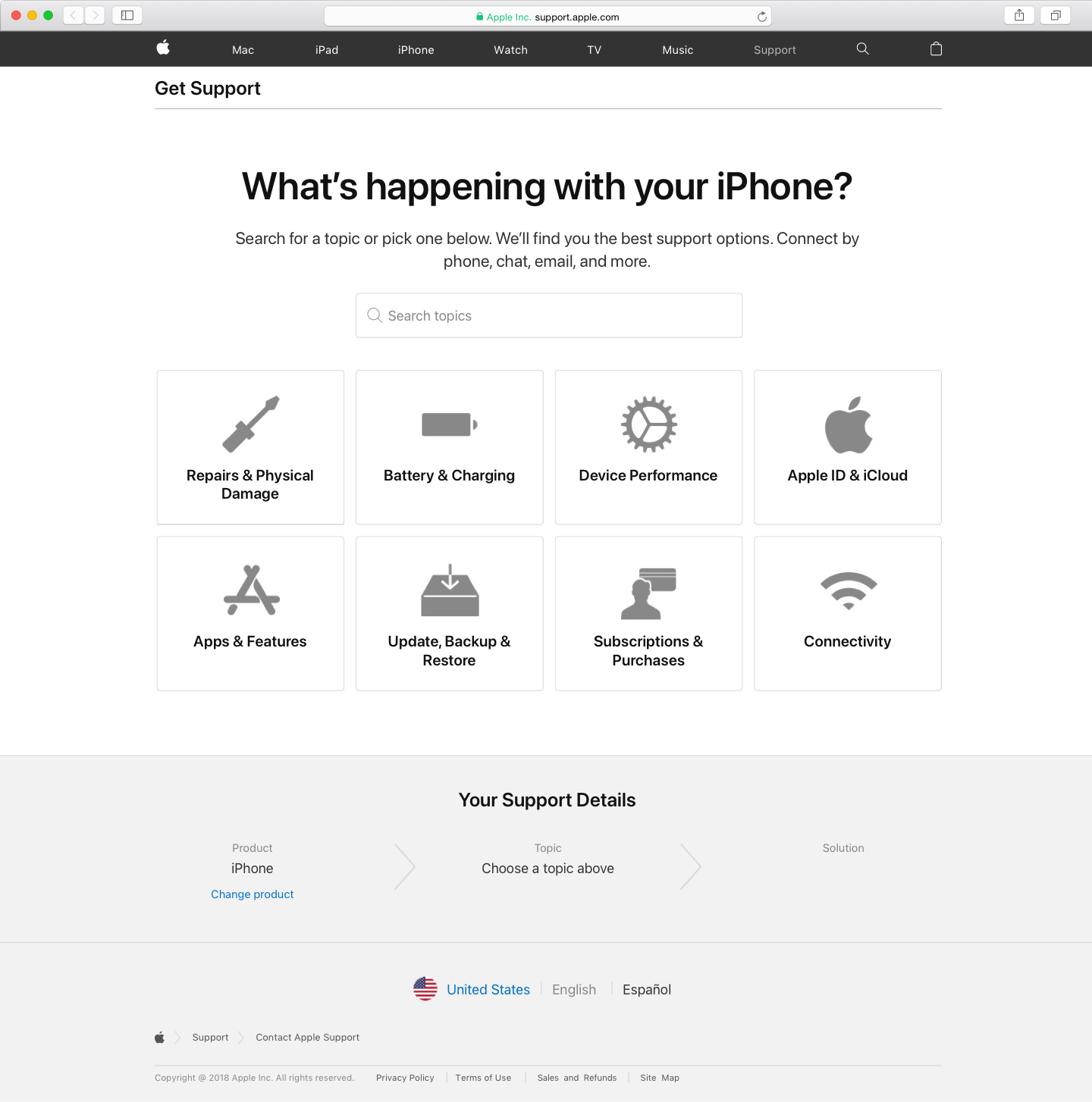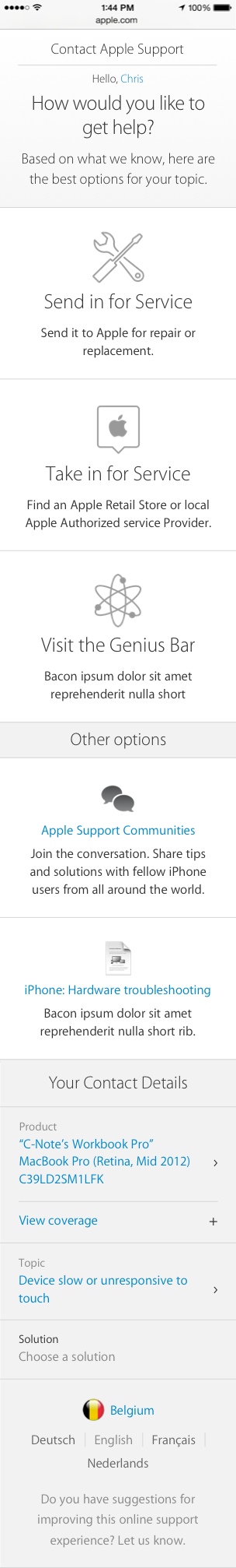 For several years, I redesigned and expanded “Contact Apple Support,” also known as “Get Support”, the global triage and routing gateway for customers seeking expert help with their products.