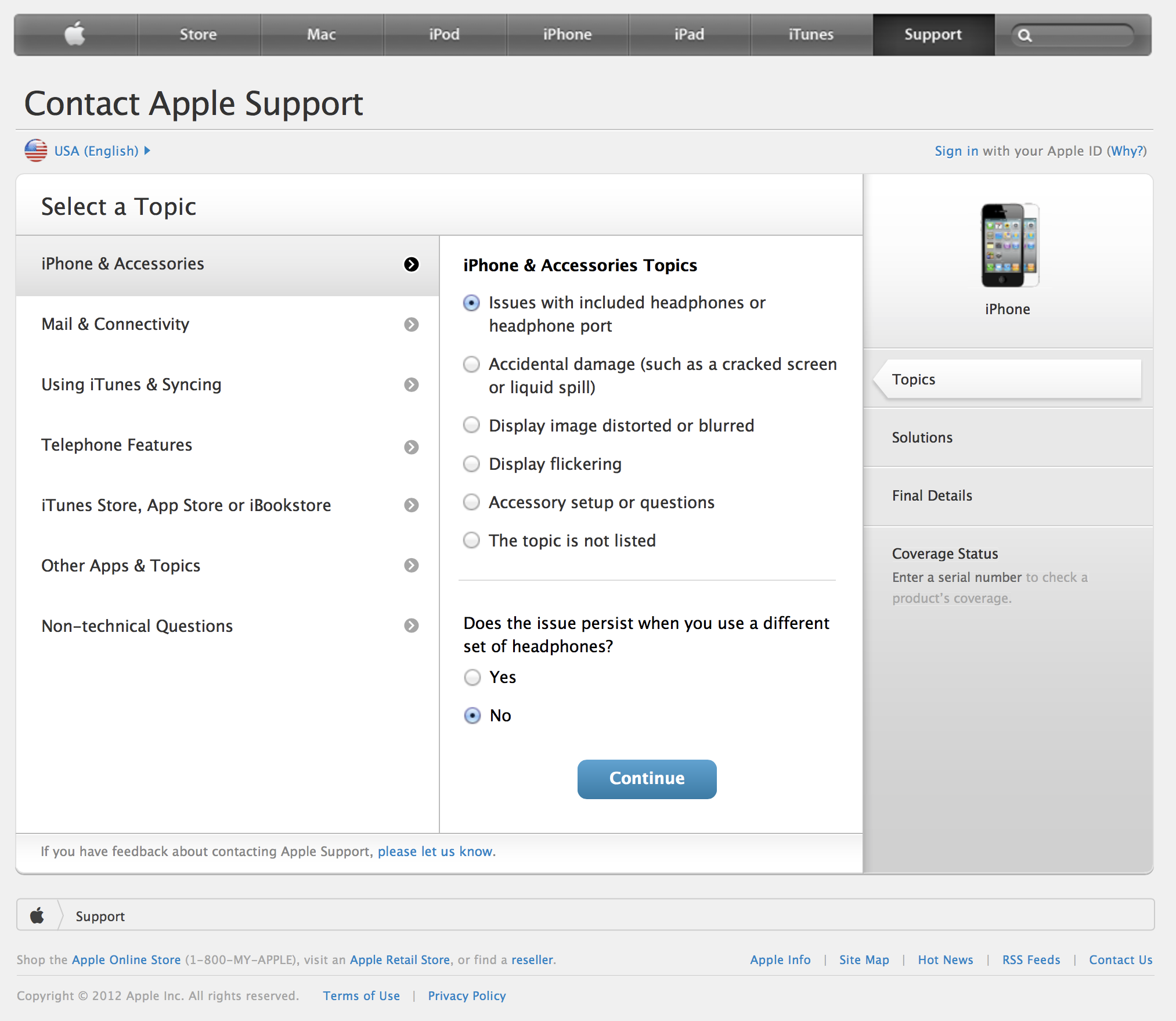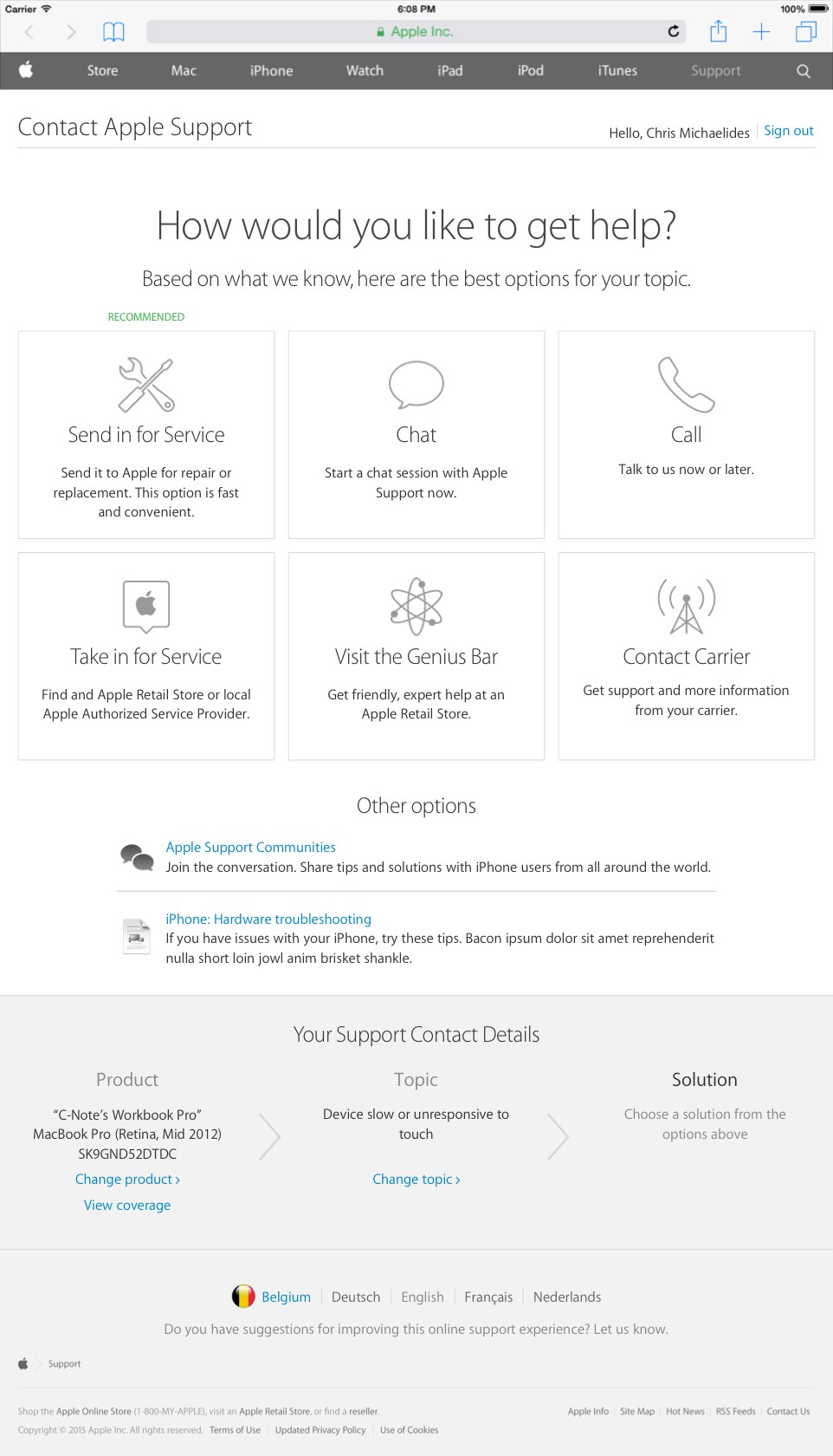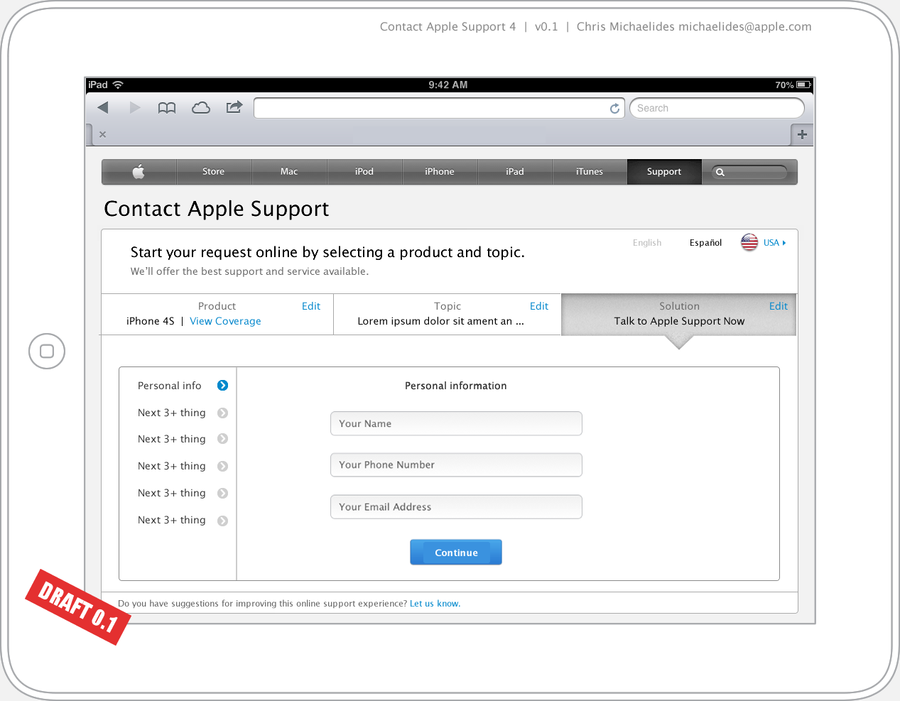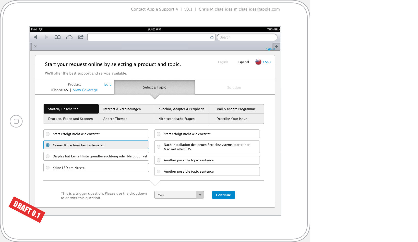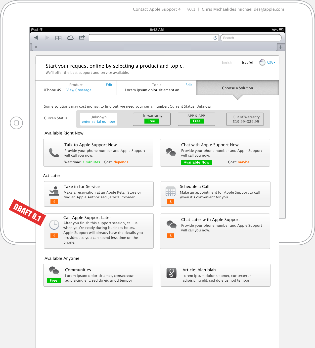 For several years, I redesigned and expanded “Contact Apple Support,” also known as “Get Support”, the global triage and routing gateway for customers seeking expert help with their products.