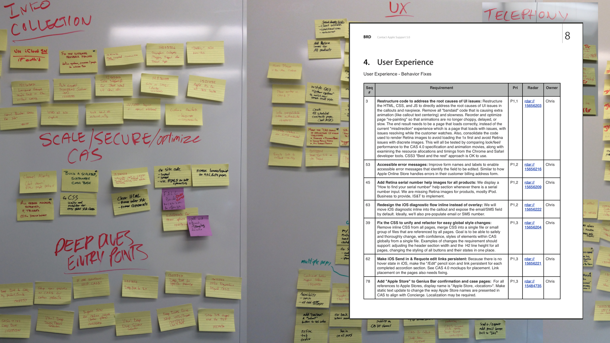 I sat at Genius bars observing interactions and interviewing customers. I listened to support calls and interviewed phone advisors.