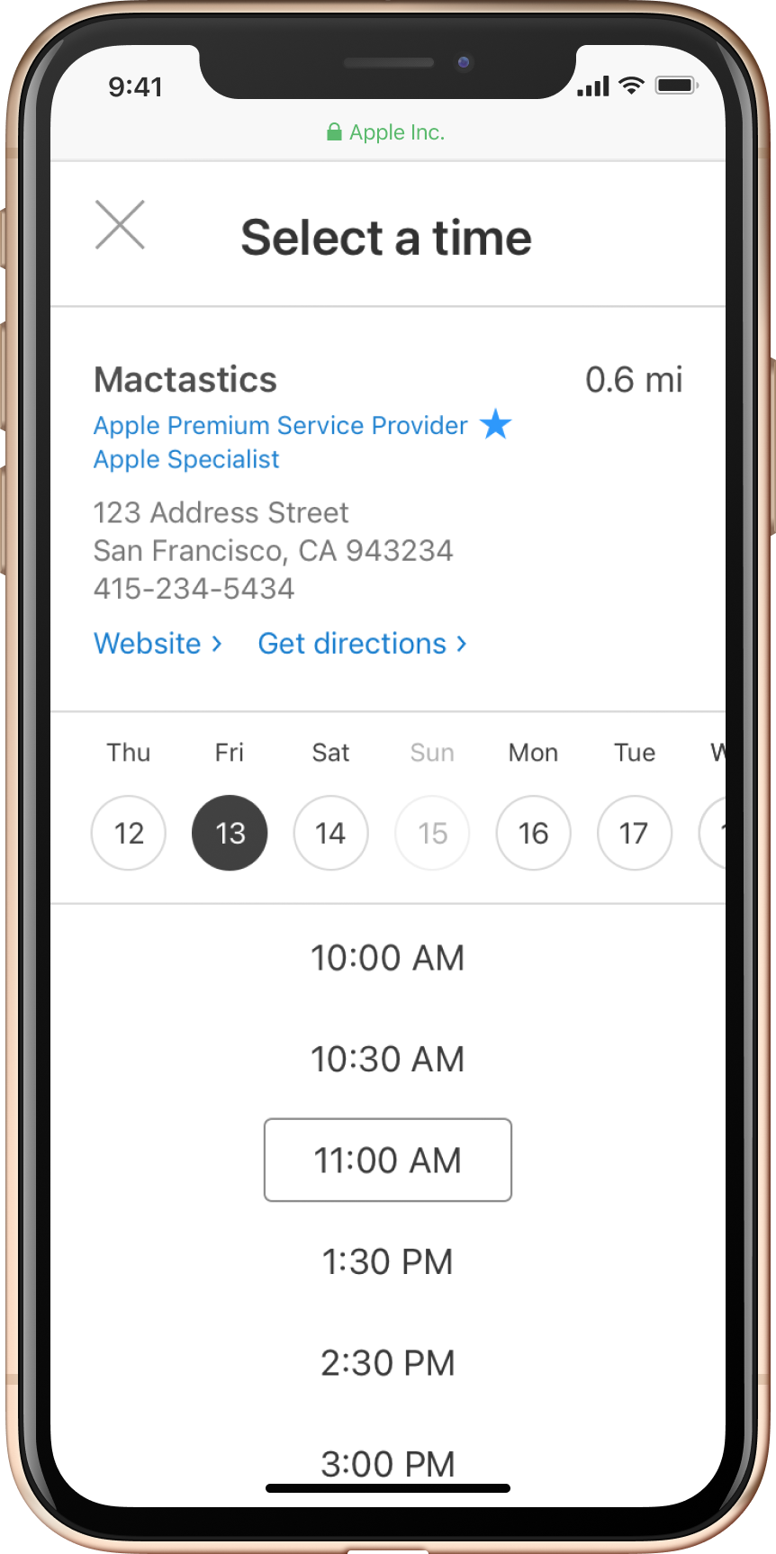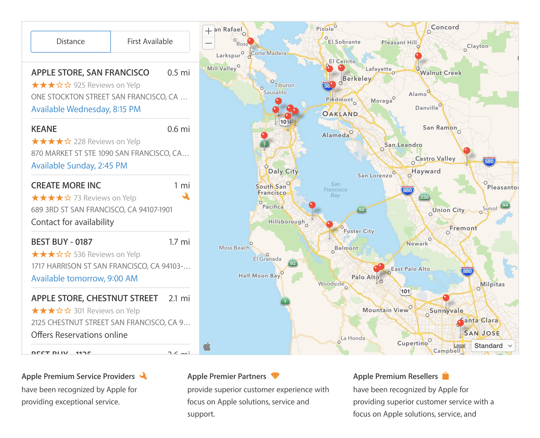 Service leadership wanted appointment booking for third party “Apple Authorized Service Providers” (AASPs). I suspected customers wouldn’t choose them due to low trust, so when testing this design, I also tested a data scenario where AASPs were closer and more available than Apple Stores.