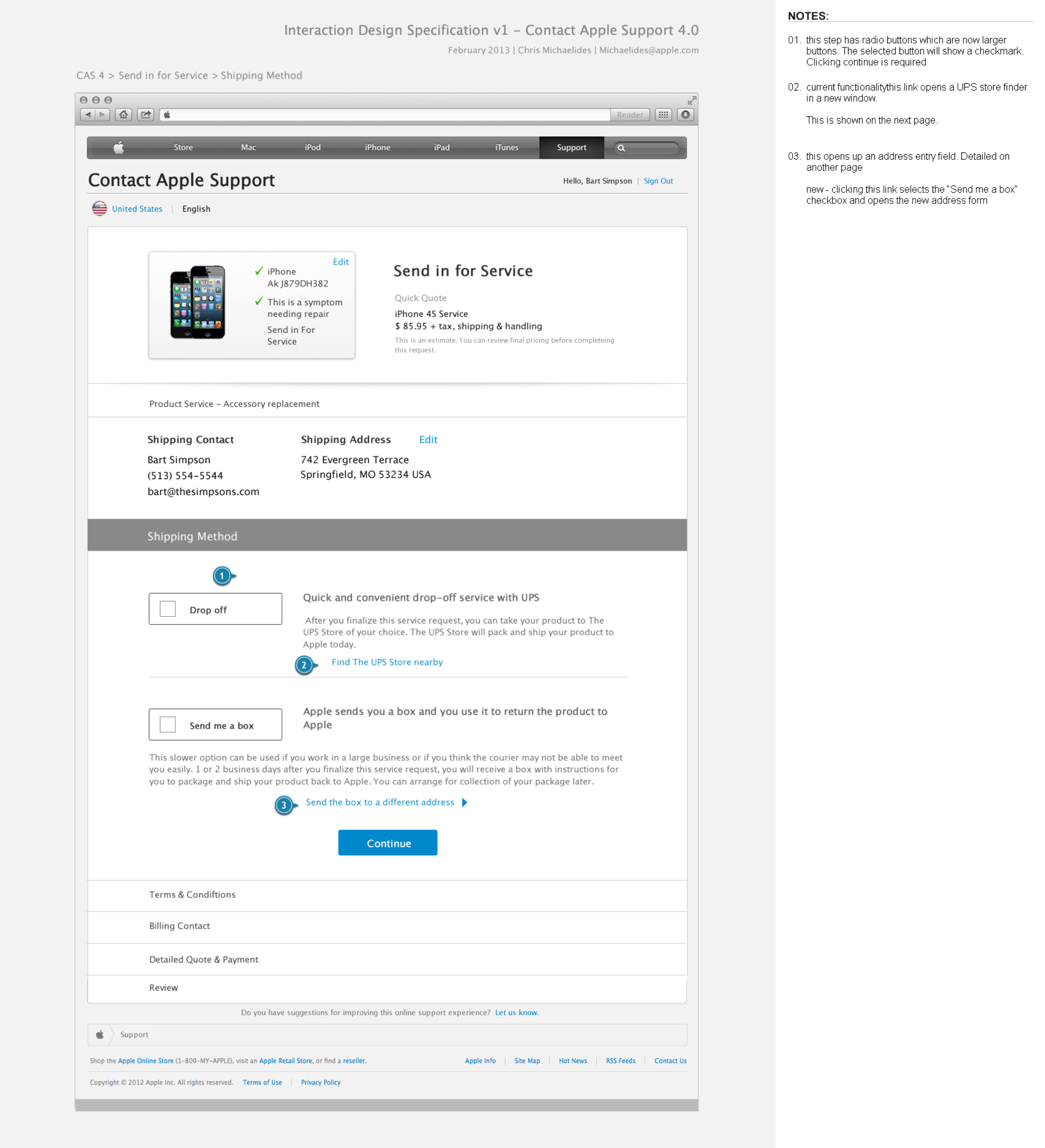 I created detailed wireframe specs for all functional variants. This enabled engineering to work while I created the final visual design. The shipping flow “Send in for Repair” uses an accordion-based design due to its unique complexity and data display requirements.
