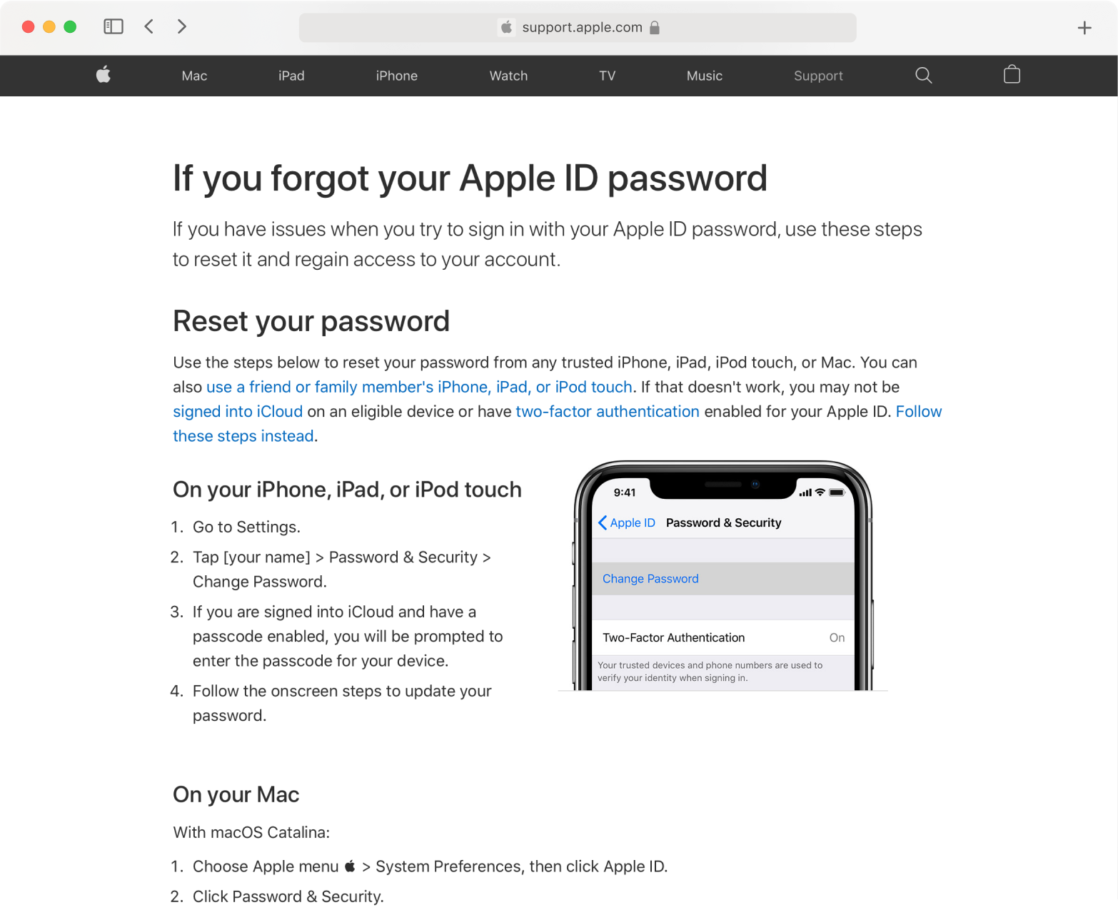 Apple Support pages made with foundational components and standards